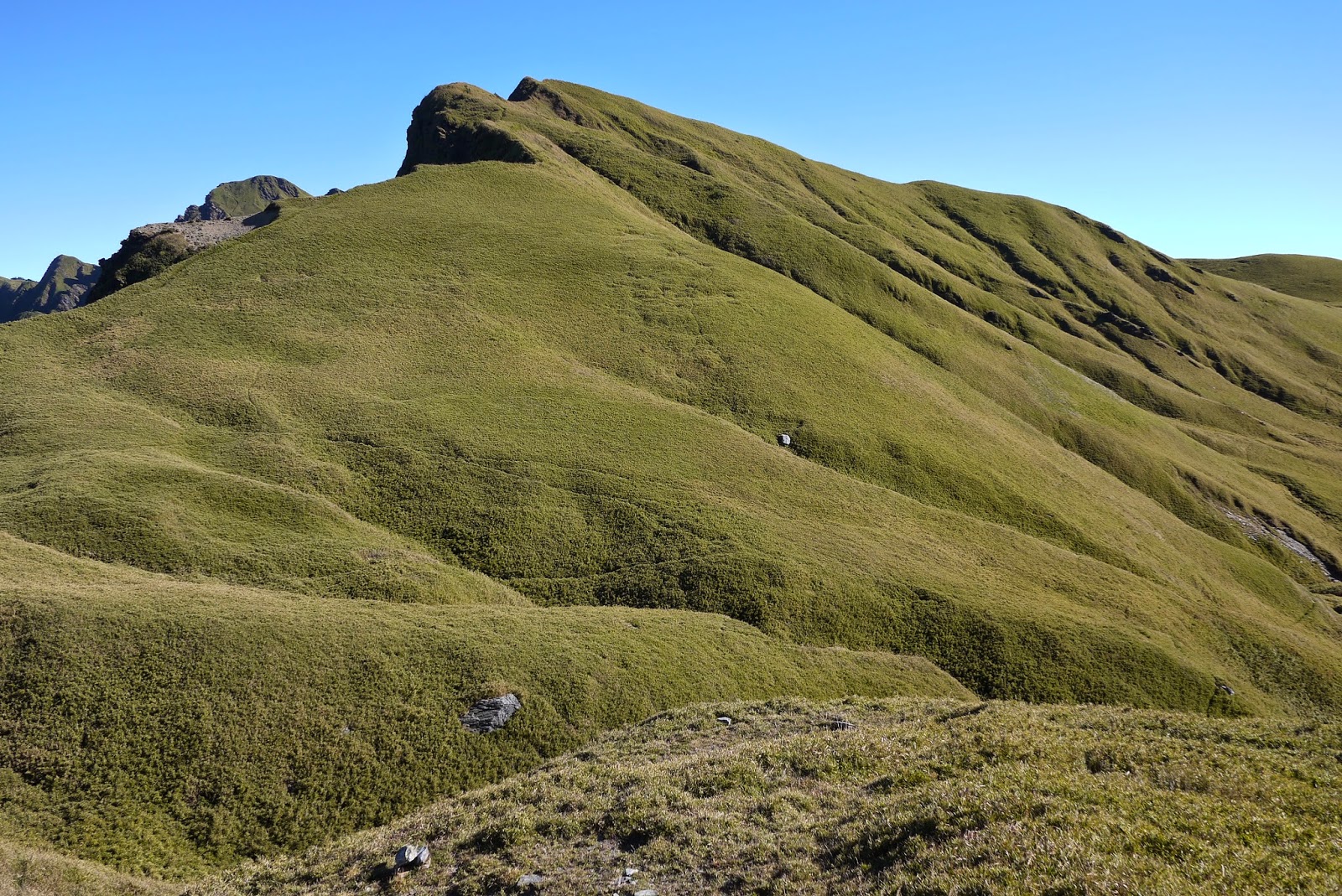 昨天下午雖然有照到一點陽光,不過天氣仍然不太客氣。從屯鹿妹池出發一路往上,路況跟前幾天差不多,但時間來到第六天,許多疲勞的後遺症會漸漸產生。
